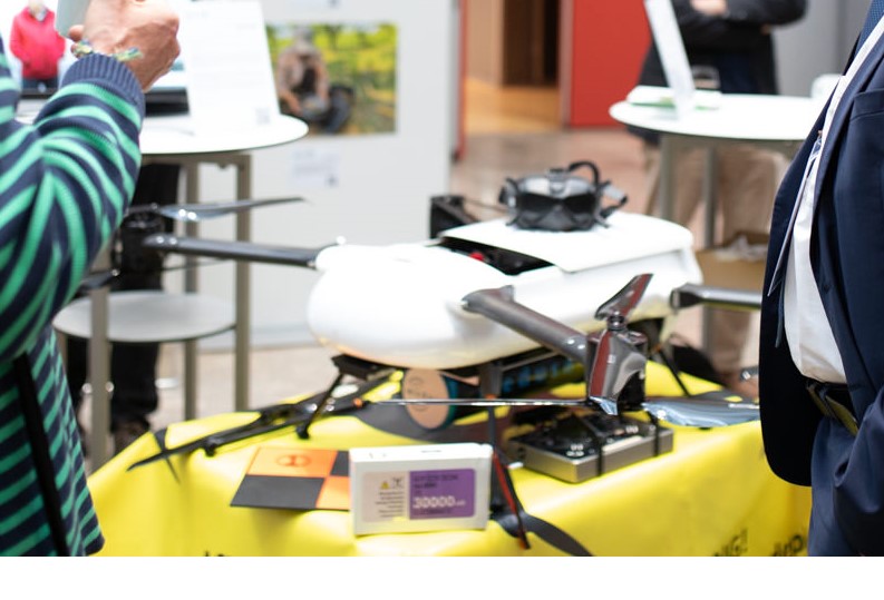 The exhibit shows a heavy-duty drone with a mounted gamma spectrometer from the DUB-GEM project, presented at the CLIENT Conference 2024. This innovative technology enables the efficient and safe exploration and monitoring of former uranium mining sites, especially in hard-to-reach mountainous regions of Central Asia.