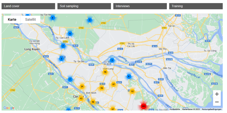 In Kombination mit Fernerkundungsdaten, ermöglichen die so gewonnenen Daten die Generierung einer hochauflösenden Karte der Landnutzung im Mekong Delta. Des Weiteren können Aussagen über die Pestizidnutzung und dessen räumliche Verteilung abgeleitet werden. Mithilfe dieser Ergebnisse können Hotspots der Pestizidkontamination abgeleitet werden, die bei der Planung zukünftiger Umstellungen auf organische Produktion berücksichtigt werden.