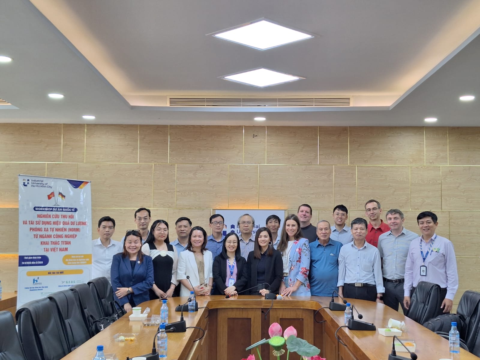 Während des Projektaufenthalts organisierten die Partner eine Fachsitzung mit dem Titel „Natürliche Radioaktivität in der Umwelt“ im Rahmen der International Vietnam Conference on Earth and Environmental Sciences (iVCEES 2025) in Quy Nhon, einer zentralvietnamesischen Küstenstadt. Fachleute aus Vietnam, Indonesien, Thailand, Japan, Frankreich und Deutschland tauschten sich aus zu rechtlichen und technischen Rahmenbedingungen für NORM, Fallstudien aus Zinnhütten, Radonmessungen und landesweiten Strahlungserhebungen in Indonesien. In Mamuju in West-Sulawesi, Indonesien, beispielsweise wurde eine außergewöhnlich hohe natürliche Strahlenbelastung von durchschnittlich etwa 32 Millisievert pro Jahr gemessen. Zum Vergleich: der weltweite Mittelwert liegt bei etwa 2,4 Millisievert. Der zweite Teil der Sitzung widmete sich praktischen Erfahrungen aus Probenahme und Sanierung sowie dem Management von NORM-Rückständen in Vietnam. Den Abschluss bildete ein Vortrag zu RENO-TITAN, der den Ansatz des Projekts zur Bilanzierung der gesamten Prozesskette und zu sicheren Optionen für Wiederverwendung und Entsorgung vorstellte.